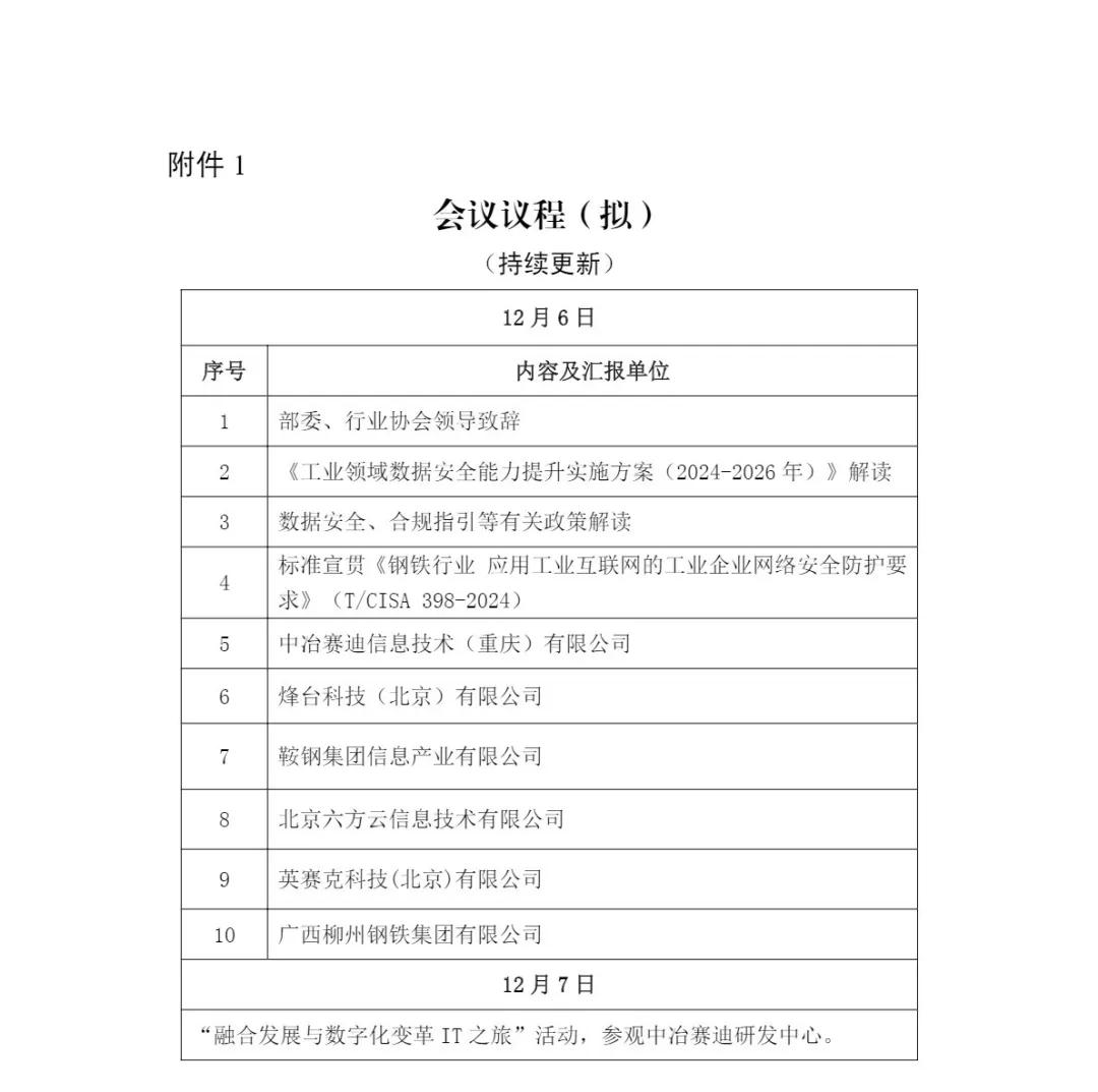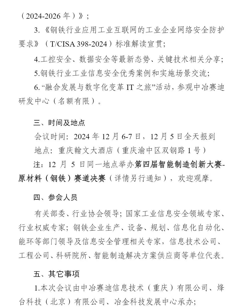 關(guān)于召開2024年鋼鐵行業(yè)工業(yè)信息安全大會暨“融合發(fā)展與數(shù)字化變革IT之旅”活動的通知