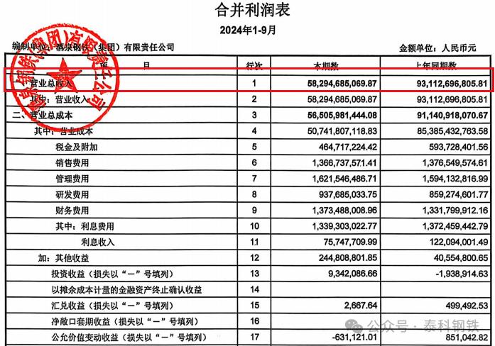 近日,酒泉鋼鐵(集團)有限責(zé)任公司2024年三季度合并及母公司財務(wù)報表公布,酒鋼集團2024年1-9月營收582.95億元(2023年同期933.12億元),凈利潤11.64億元(2023年同期17.45億元)。