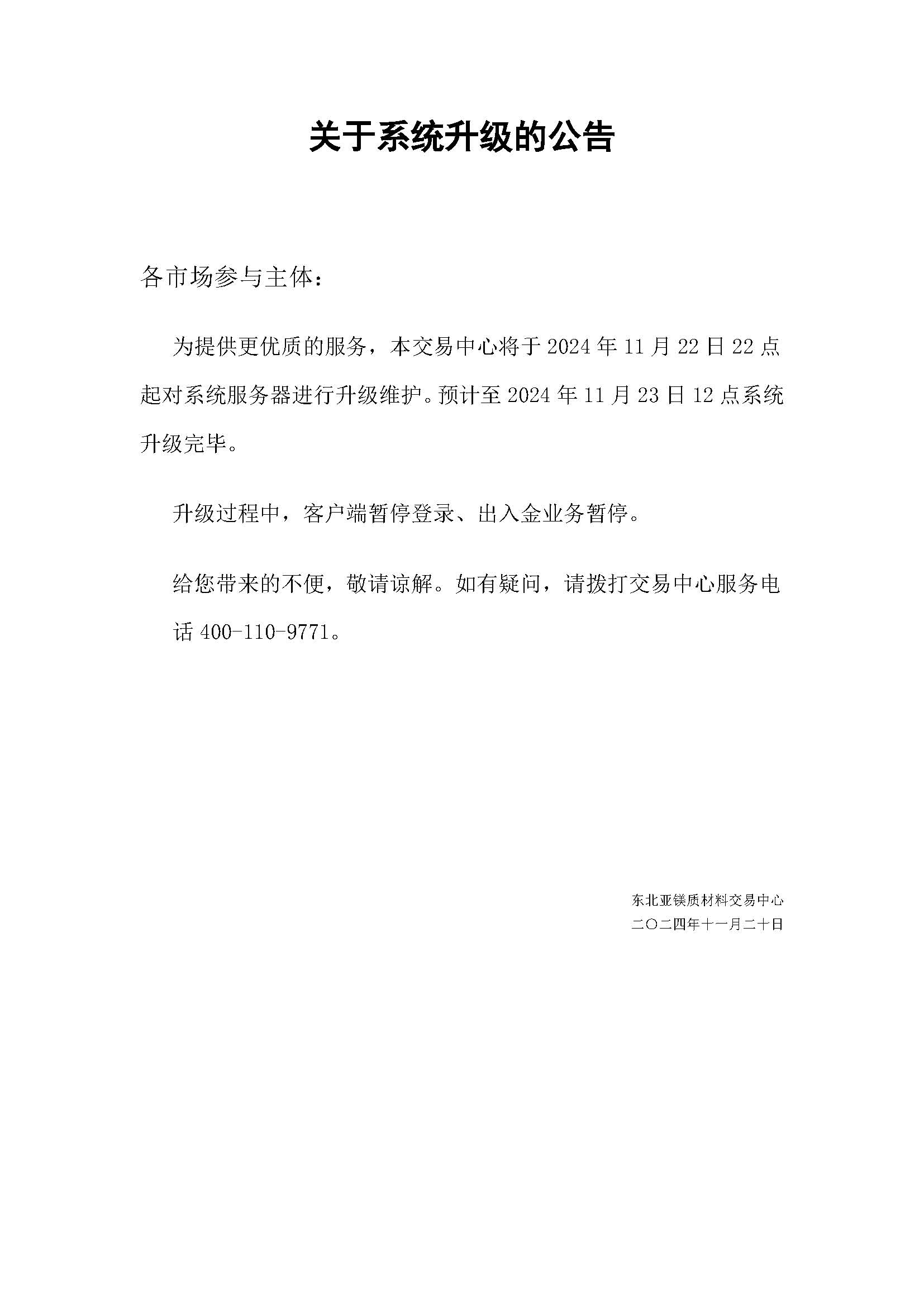 關于系統(tǒng)升級的公告