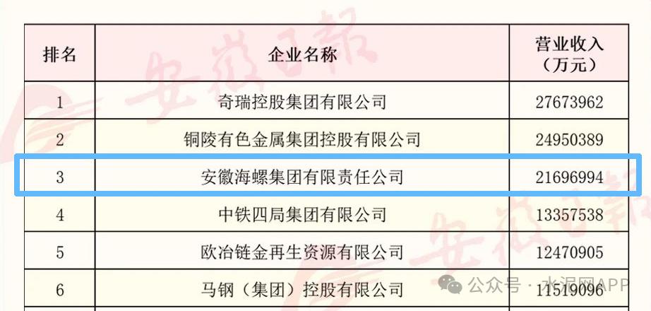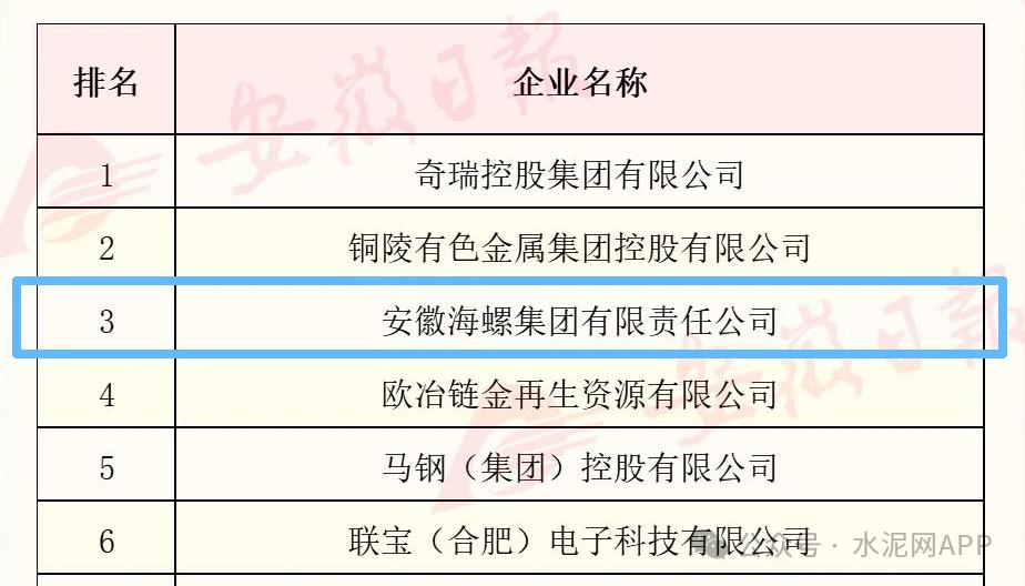 海螺集團(tuán)名列“安徽制造業(yè)百強(qiáng)企業(yè)榜單”第3位