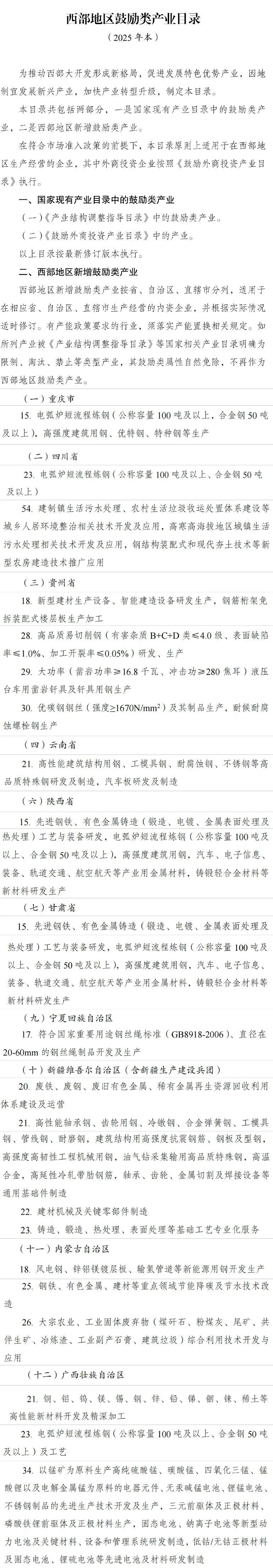西部地區(qū)新增鼓勵類產業(yè)中涉及鋼鐵領域內容如下: