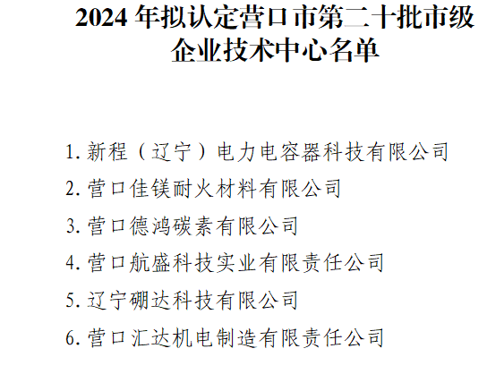 附件:2024年擬認定營口市第二十批市級企業(yè)技術中心名單