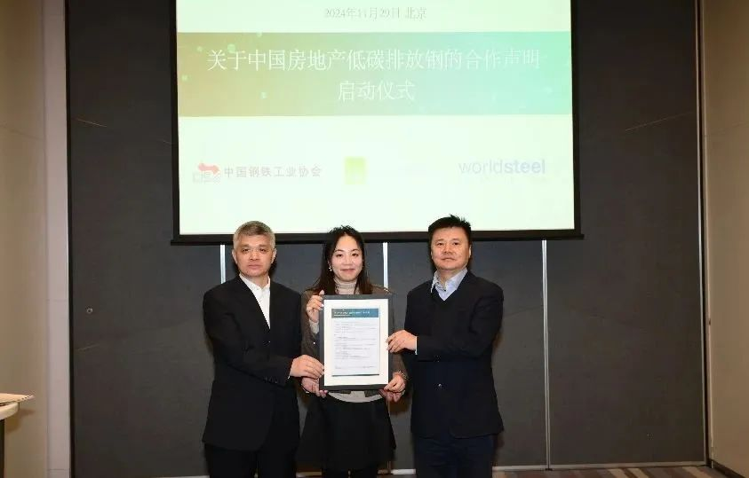 為加快推進(jìn)低碳排放鋼在房地產(chǎn)行業(yè)的應(yīng)用,2024年11月29日,在中國鋼鐵工業(yè)協(xié)會(huì)、世界鋼鐵協(xié)會(huì)、城市土地學(xué)會(huì)(ULI)的共同倡議下,寶武、首鋼、河鋼、南鋼、包鋼、香港紹榮鋼鐵、安賽洛米塔爾等7家鋼鐵企業(yè),中建八局、中海、華潤置地、江蘇建業(yè)、中瑞鼎峰、越秀商管、珠江產(chǎn)投、太古地產(chǎn)、恒隆地產(chǎn)、瑞安房地產(chǎn)、新世界地產(chǎn)、鷹君集團(tuán)、遠(yuǎn)洋集團(tuán)等13家房地產(chǎn)企業(yè),以及中鋼協(xié)、世界鋼協(xié)、城市土地學(xué)會(huì)、落基山研究所、亞洲研究與參與(ARE)和易碳等6家院所和協(xié)會(huì),在北京和香港兩地共同啟動(dòng)了房地產(chǎn)低碳排放鋼的合作倡議,承諾自愿推廣低碳排放鋼的使用。