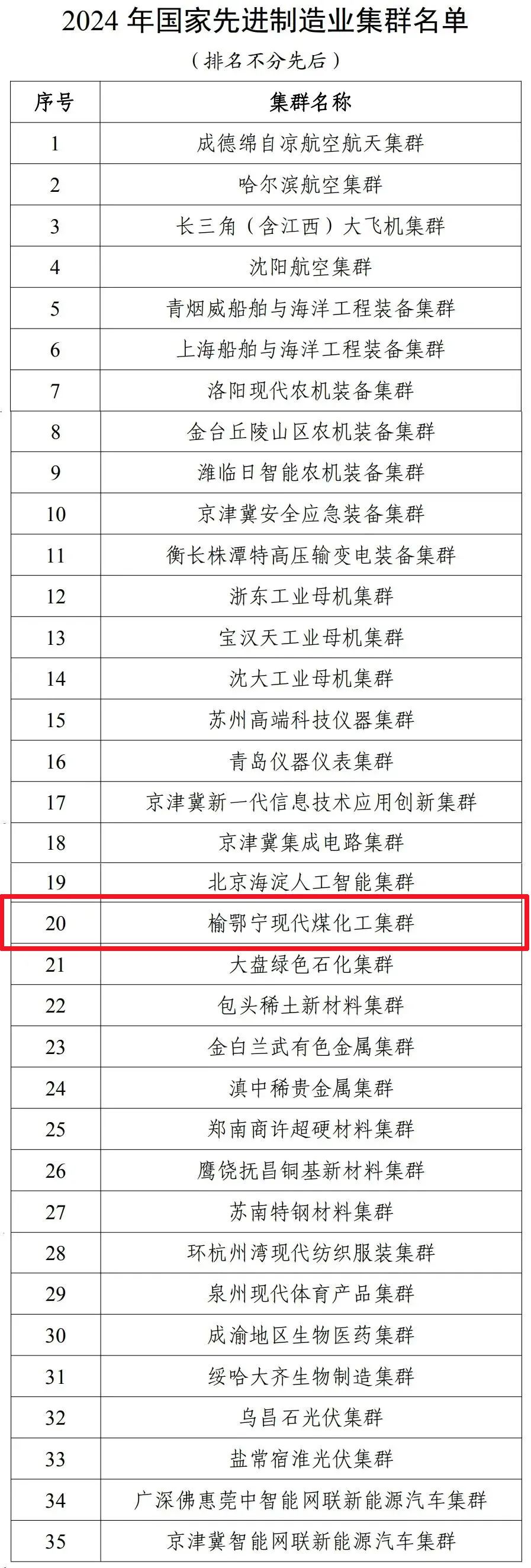 工業(yè)和信息化部近日公布了《2024年國家先進制造業(yè)集群名單》,共計35個集群上榜。其中,榆鄂寧現(xiàn)代煤化工集群榜上有名。