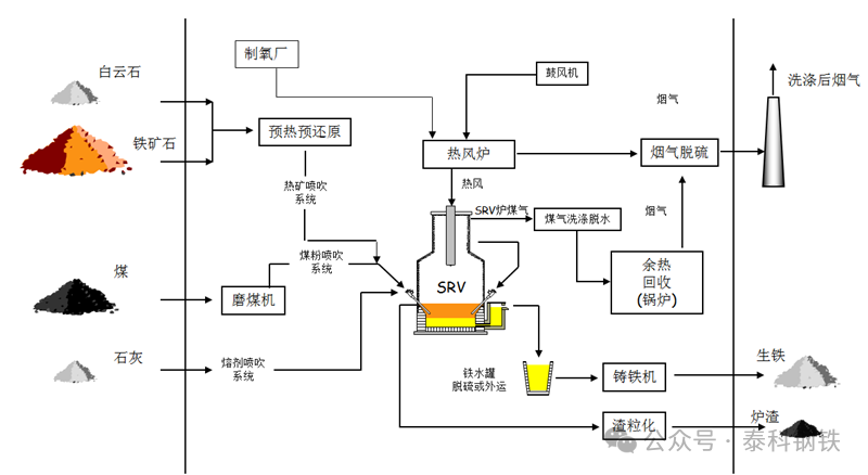 由于不需要使用焦炭、燒結(jié)礦或球團(tuán)爐料,可使用更便宜的鐵礦粉和非焦煤,并且可直接噴吹工廠廢料,因此可取消燒結(jié)和焦化廠,煉鐵成本較低。