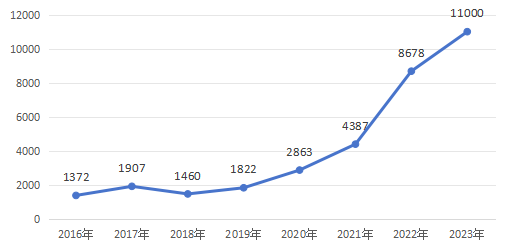 圖1 2016年-2023年新疆煤炭外運(yùn)量(單位:萬(wàn)噸)