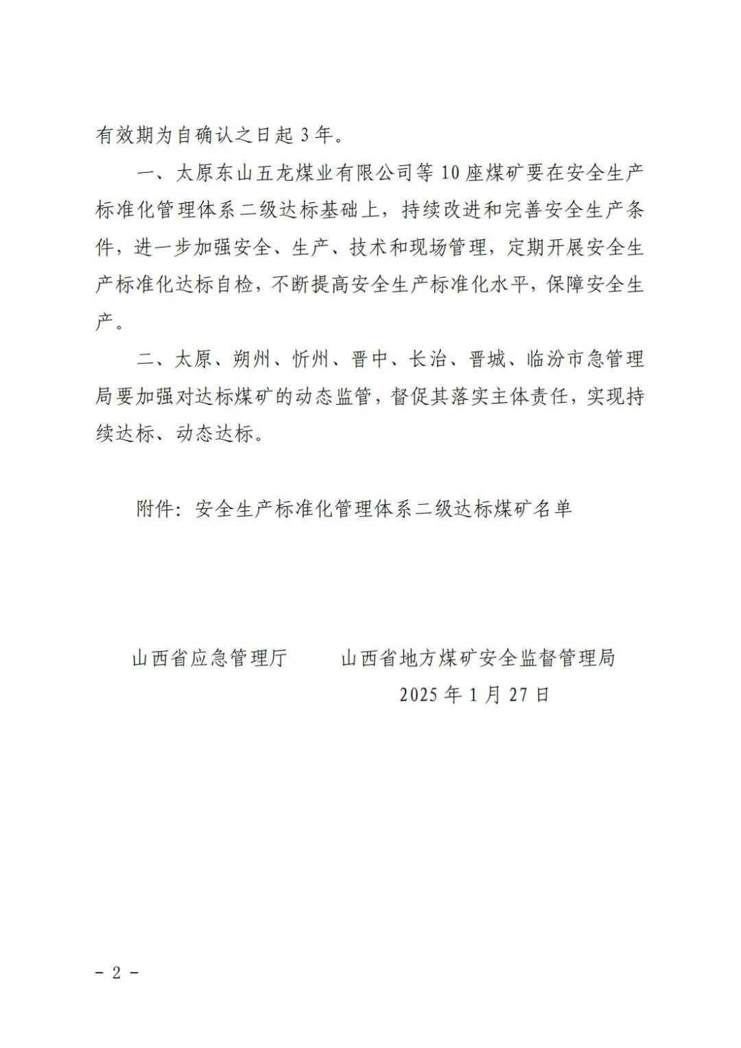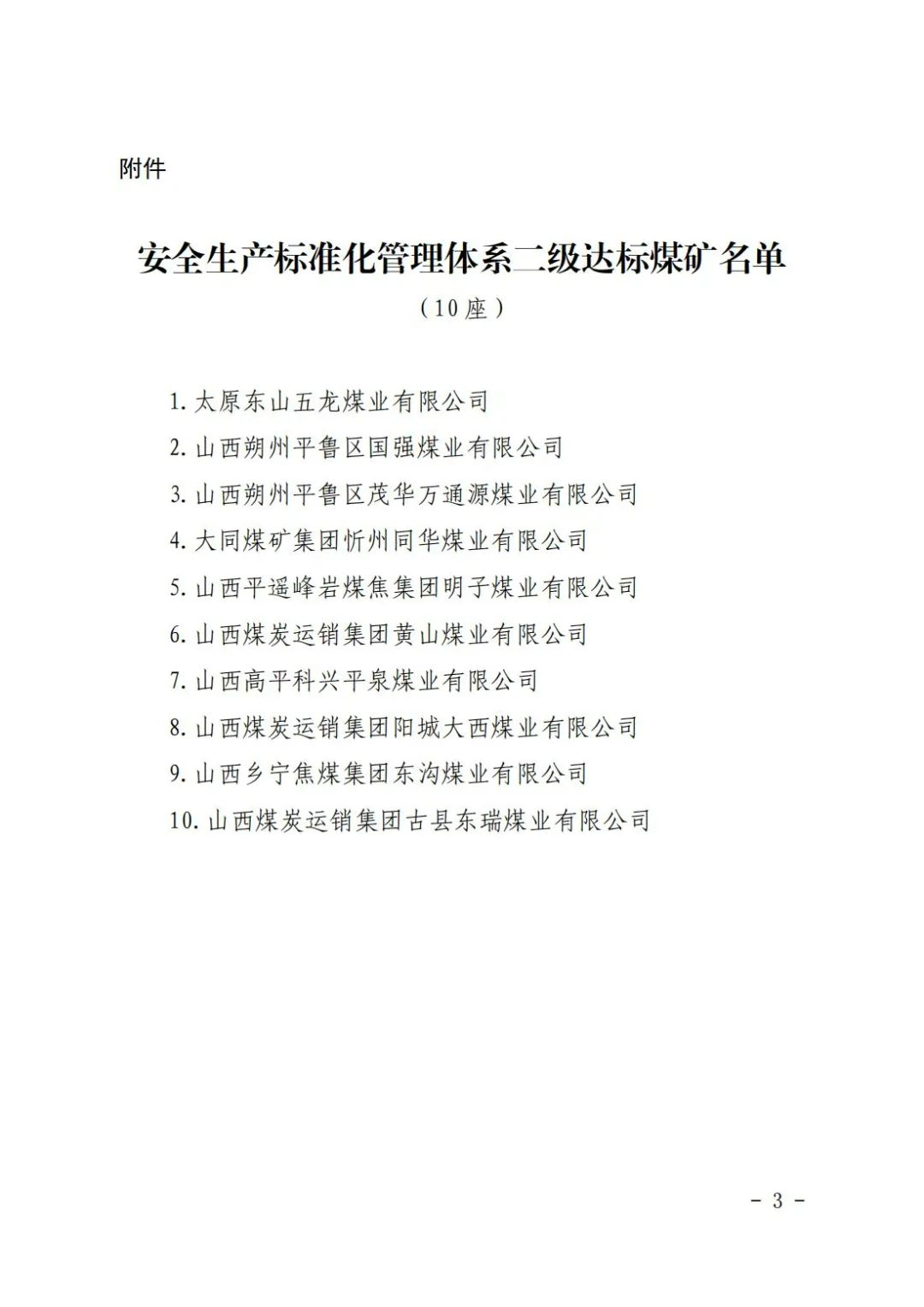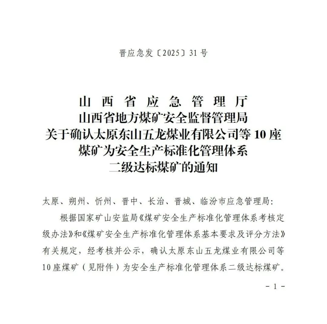 山西省確認(rèn)10座煤礦為安全生產(chǎn)標(biāo)準(zhǔn)化管理體系二級達(dá)標(biāo)煤礦