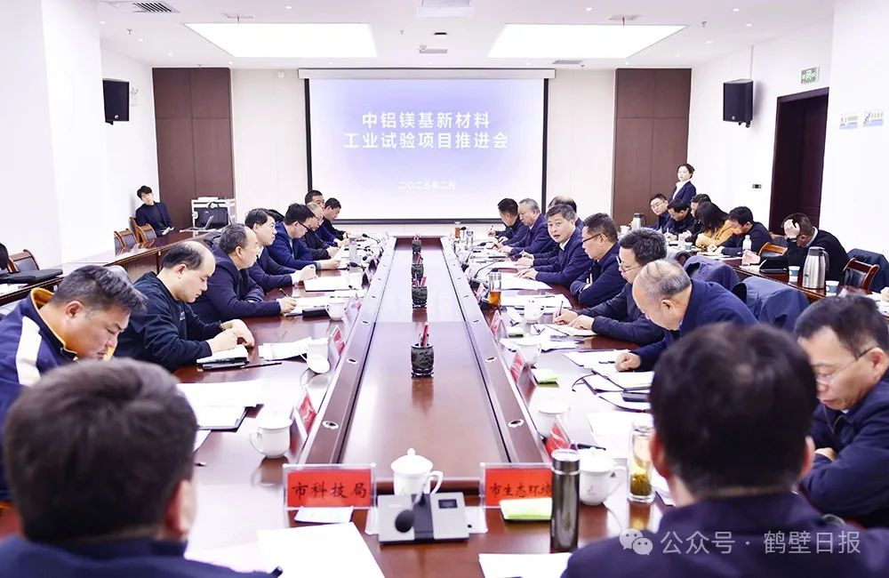 2月12日下午,中鋁鎂基新材料綜合利用工業(yè)試驗項目推進會召開。中鋁鄭州有色金屬研究院黨委書記、董事長陳開斌,中鋁中州鋁業(yè)有限公司總經(jīng)理張輝,中鋁鄭州有色金屬研究院副總經(jīng)理王懷江;市長李可,副市長胡紅軍參加。