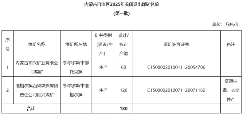 附件:內蒙古自治區(qū)2025年關閉退出煤礦名單(第一批)
