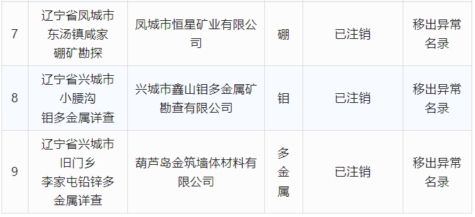 附件:遼寧省2024年度礦業(yè)權(quán)人異常名錄列入移出名單