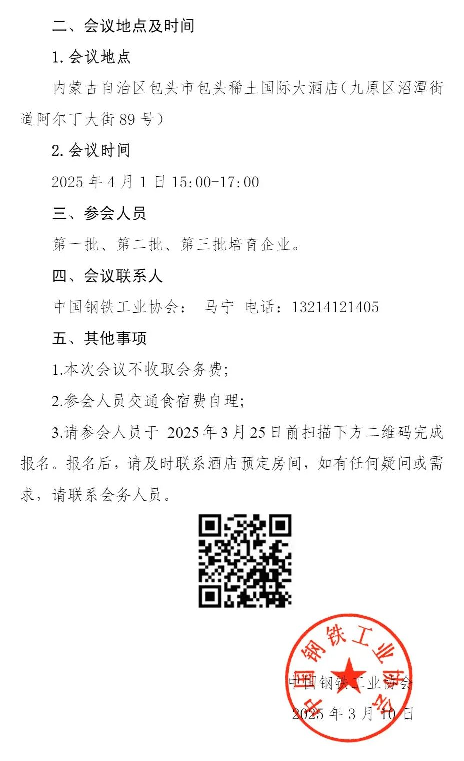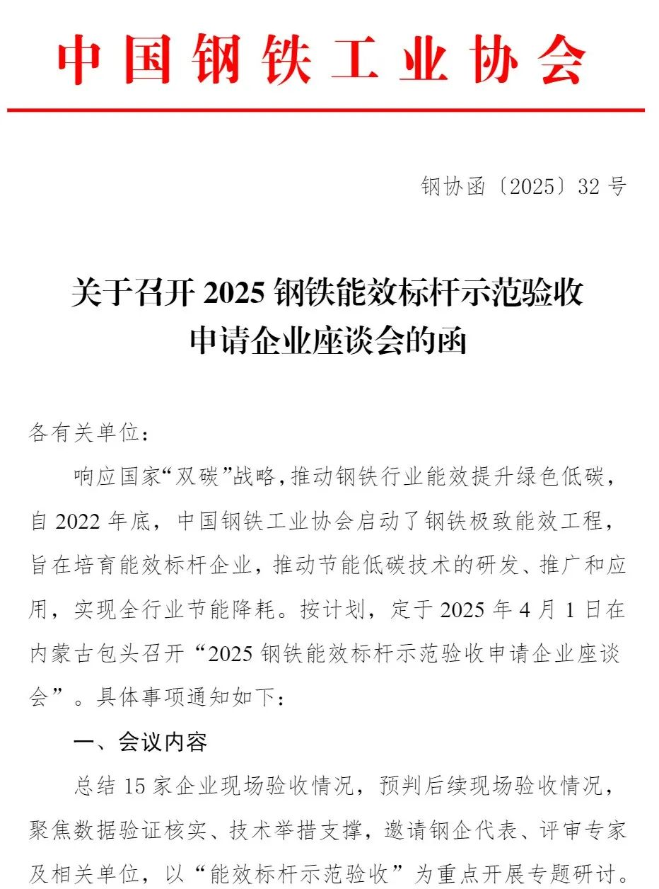 關(guān)于召開2025鋼鐵能效標(biāo)桿示范驗(yàn)收申請(qǐng)企業(yè)座談會(huì)的函