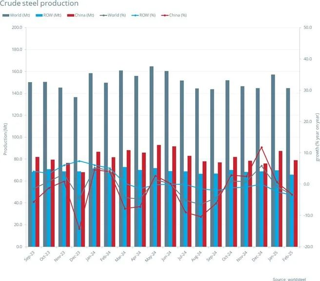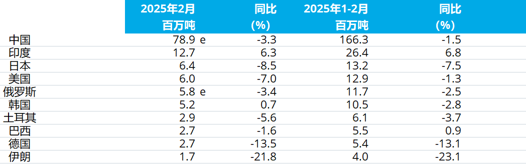 2025年2月全球粗鋼產(chǎn)量