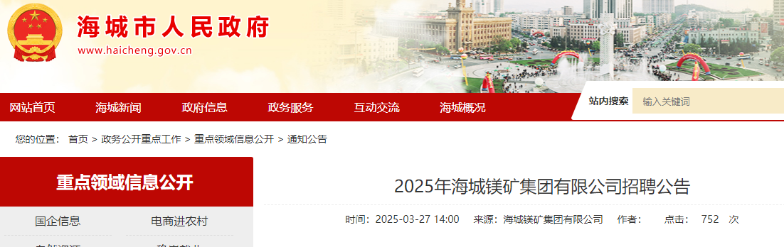 為切實(shí)做好海城鎂礦集團(tuán)有限公司人才培養(yǎng)及可持續(xù)發(fā)展的人才戰(zhàn)略,進(jìn)一步優(yōu)化人才結(jié)構(gòu),為企業(yè)未來(lái)發(fā)展做好人才儲(chǔ)備,2025年海鎂集團(tuán)擬計(jì)劃招聘64人。具體招聘崗位及要求如下: