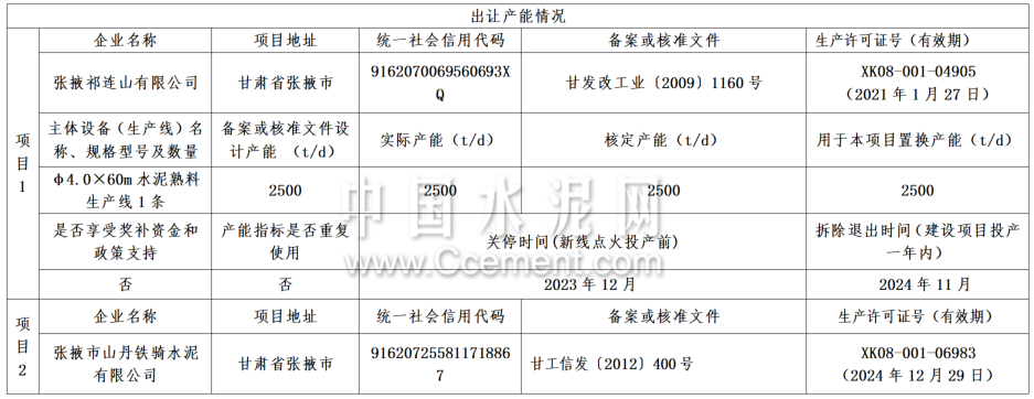 據(jù)甘肅工信廳,該項目產(chǎn)能置換方案如下: