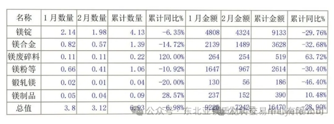 2025年1-2月中國各類鎂產(chǎn)品出口統(tǒng)計情況 (單位:萬噸、萬美元)