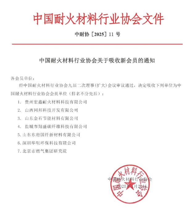 中國(guó)耐火材料行業(yè)協(xié)會(huì)關(guān)于吸收新會(huì)員的通知