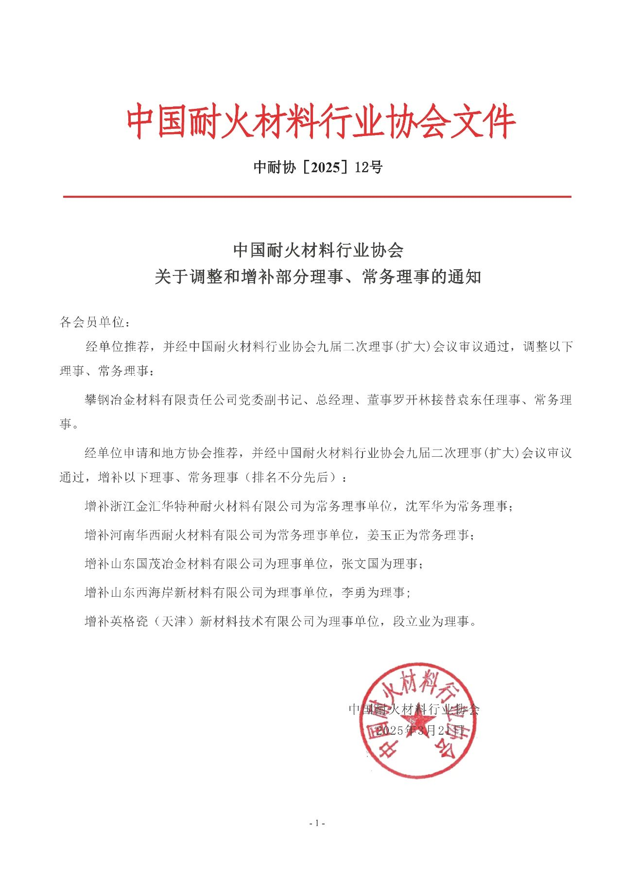 中國耐火材料行業(yè)協(xié)會關(guān)于吸收新會員的通知