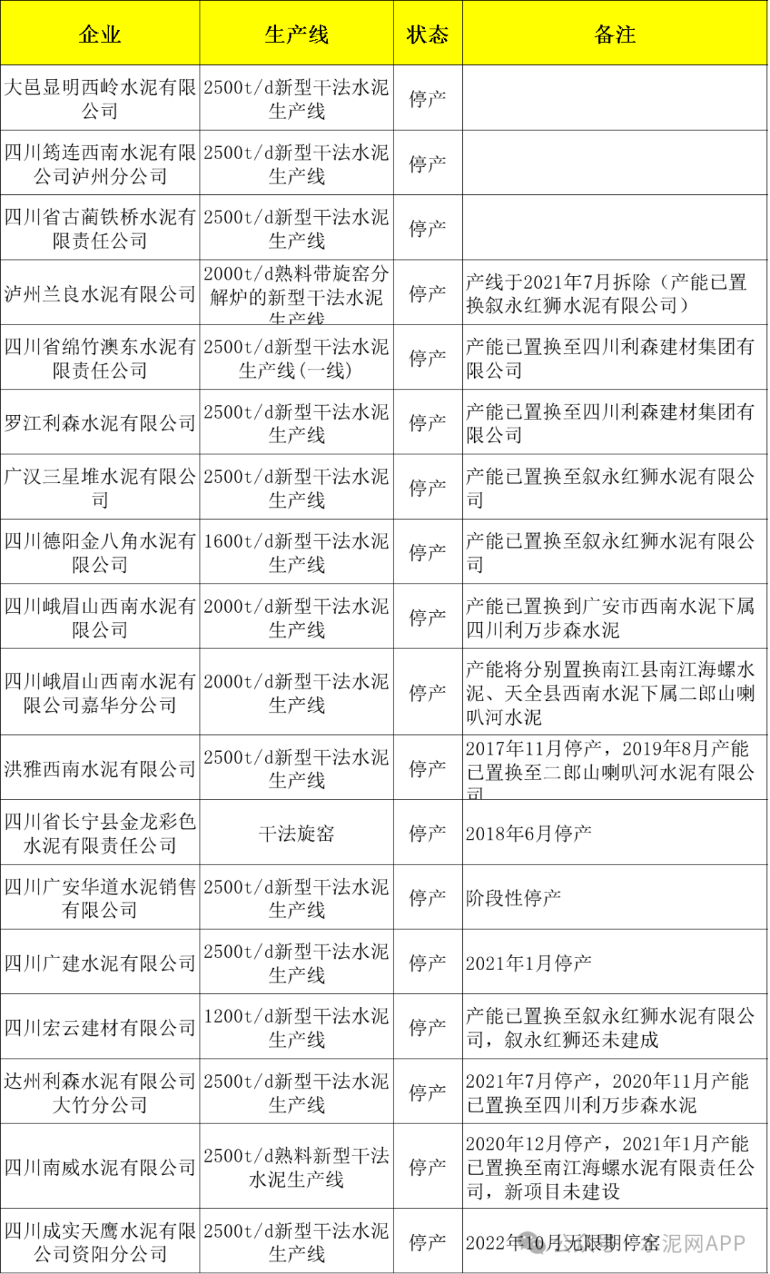 四川18條水泥熟料生產(chǎn)線停產(chǎn)