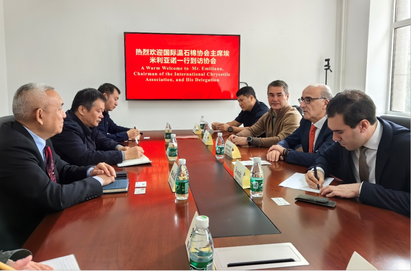 潘東暉會長對埃米利亞諾主席一行的來訪表示熱烈歡迎。他陳述了中國非金屬礦工業(yè)協(xié)會愿意加入國際溫石棉協(xié)會的理由。王文利常務(wù)副會長兼秘書長介紹了近年來中國溫石棉產(chǎn)業(yè)發(fā)展的相關(guān)情況,闡述了中國非金屬礦工業(yè)協(xié)會爭取加入國際溫石棉協(xié)會的工作進展和協(xié)會在反對將溫石棉列入《鹿特丹公約》管控名錄“附件三”方面所做的努力,提出希望中國溫石棉產(chǎn)業(yè)在科學研究、規(guī)范標準、生產(chǎn)技術(shù)等方面得到國際溫石棉協(xié)會的支持與幫助,表示中國非金屬礦工業(yè)協(xié)會愿意與國際溫石棉協(xié)會共同推進溫石棉產(chǎn)業(yè)的持續(xù)發(fā)展。