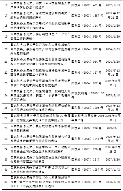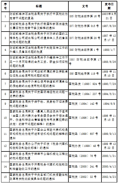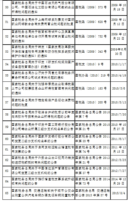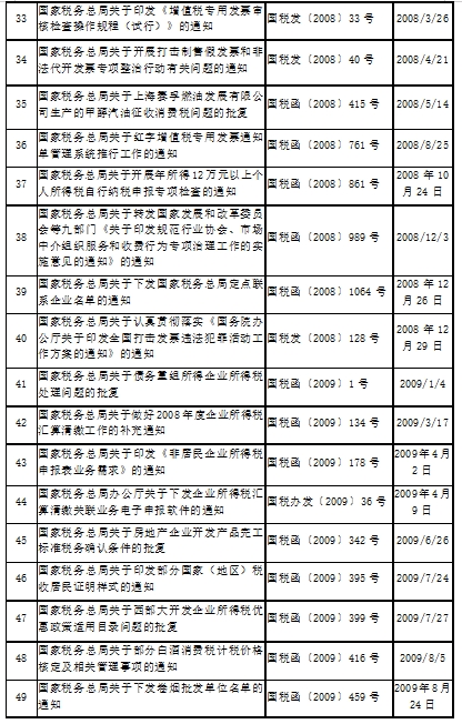 全文廢止的稅務規(guī)范性文件目錄