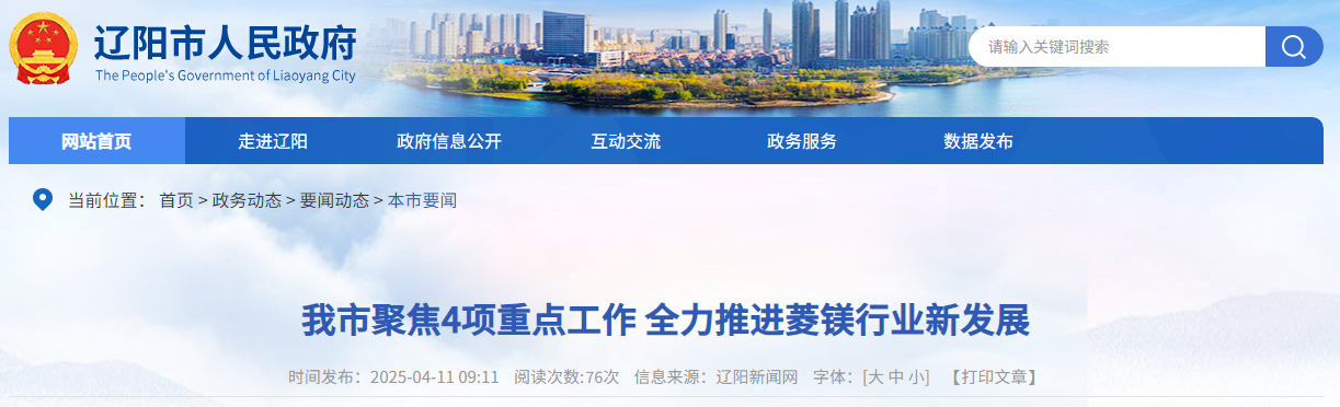 一季度,遼陽市菱鎂行業(yè)高質(zhì)量發(fā)展工作穩(wěn)步推進。在全面總結工作經(jīng)驗、階段性成果的基礎上,遼陽市聚焦4項重點工作,力求全方位推動菱鎂行業(yè)實現(xiàn)新的突破與提升。