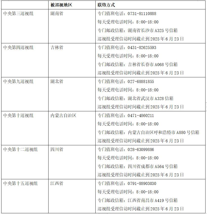 已進(jìn)駐中央巡視組聯(lián)絡(luò)方式: