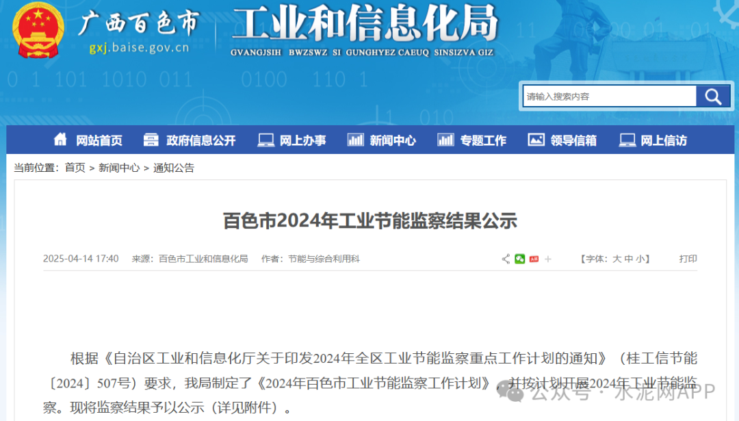 4月14日,廣西百色市工信局發(fā)布2024年工業(yè)節(jié)能監(jiān)察結(jié)果公示。
