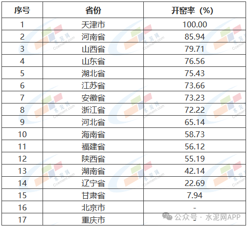 *以上數(shù)據(jù),根據(jù)中國(guó)水泥網(wǎng)大數(shù)據(jù)平臺(tái)測(cè)算,開(kāi)窯率與實(shí)際或有出入,開(kāi)窯率排行僅供參考。