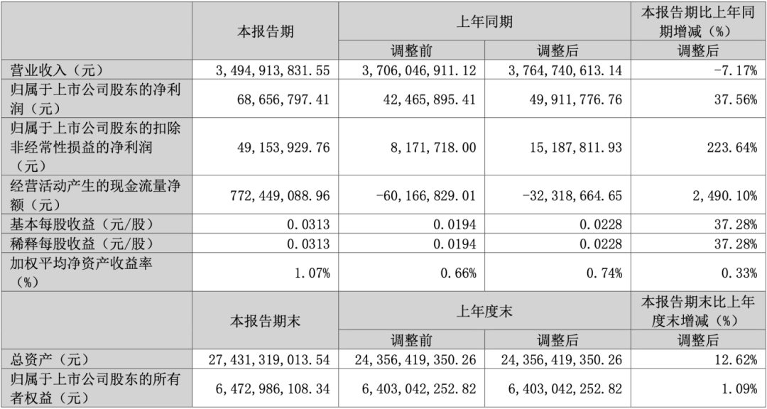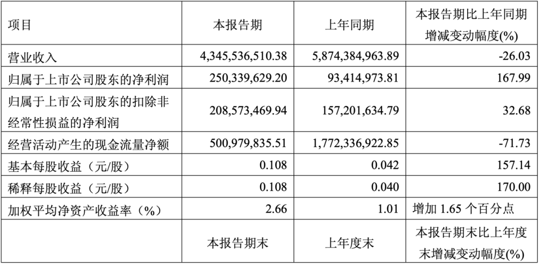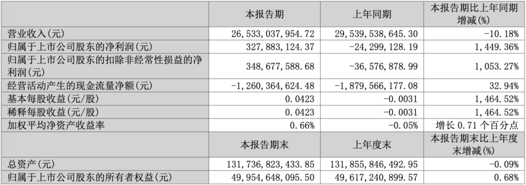 一季度首鋼股份營(yíng)業(yè)收入為265.33億元,同比下降10.18%;歸母凈利潤(rùn)自去年同期虧損2430萬(wàn)元成功扭虧,實(shí)現(xiàn)歸母凈利潤(rùn)3.28億元;扣非歸母凈利潤(rùn)自去年同期虧損3658萬(wàn)元成功扭虧,實(shí)現(xiàn)扣非歸母凈利潤(rùn)3.49億元;經(jīng)營(yíng)現(xiàn)金流凈額為-12.60億元,同比增長(zhǎng)32.94%;EPS(全面攤薄)為0.0422元。