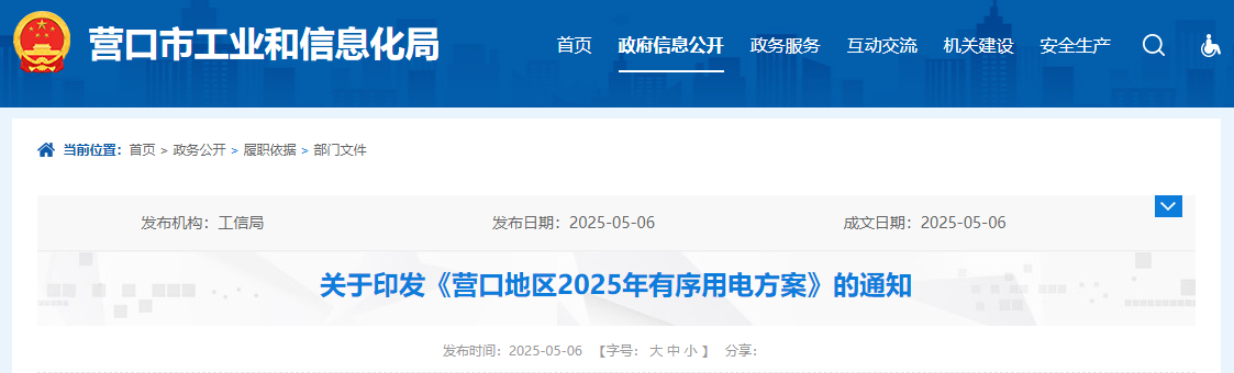 為保障電力供應(yīng)平穩(wěn)有序,做好有序用電管理工作,營口市工信局根據(jù)《電力負荷管理辦法(2023版)》、《電力需求側(cè)管理辦法(2023年版)》、遼寧省工業(yè)和信息化廳《關(guān)于組織編制2025年有序用電方案的通知》要求,結(jié)合營口地區(qū)負荷特點、性質(zhì)及構(gòu)成,經(jīng)市政府同意,組織編制了《營口地區(qū)2025年有序用電方案》。