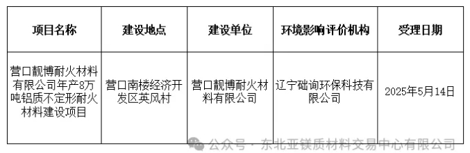 附件:營(yíng)口靚博耐火材料有限公司年產(chǎn)8萬(wàn)噸鋁質(zhì)不定形耐火材料建設(shè)項(xiàng)目