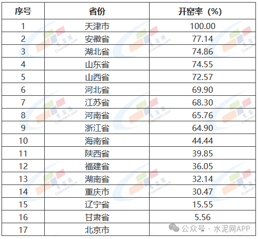 *以上數(shù)據(jù),根據(jù)中國水泥網(wǎng)大數(shù)據(jù)平臺測算,開窯率與實際或有出入,開窯率排行僅供參考。