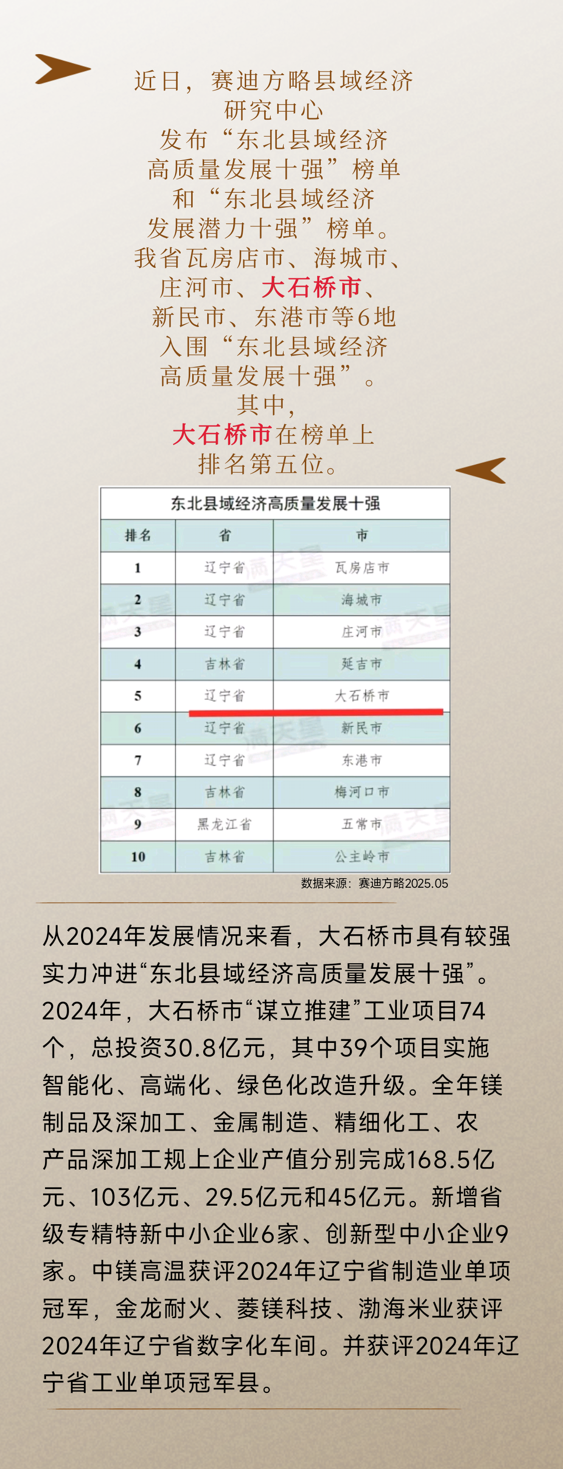 喜訊|大石橋上榜東北縣域十強!