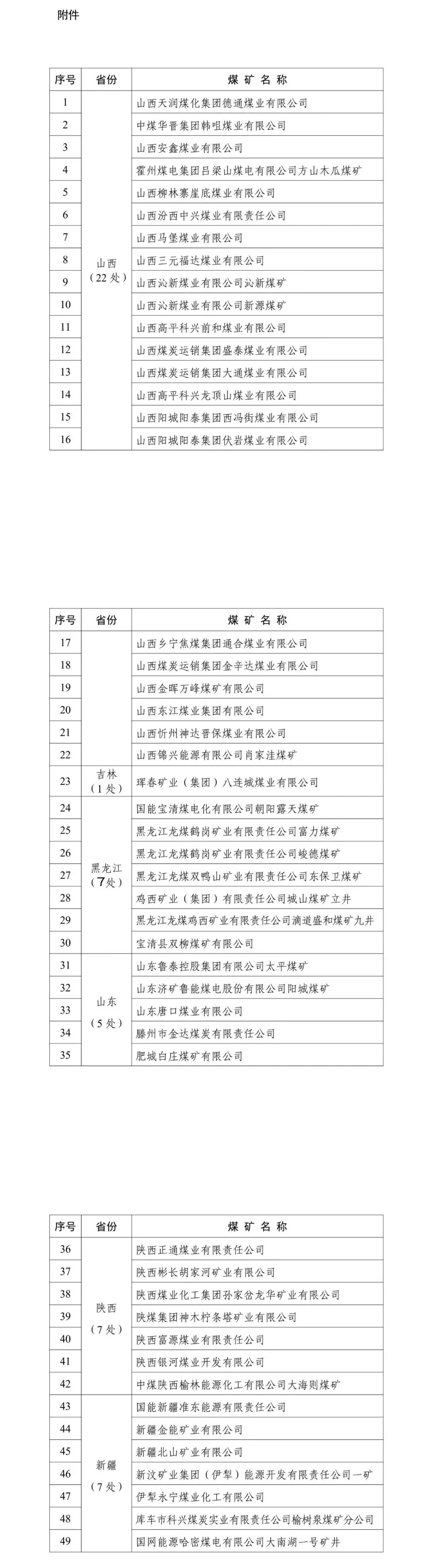 標(biāo)準(zhǔn)煤礦名單的通知