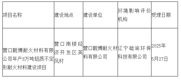 營口靚博耐火材料有限公司年產8萬噸鋁質不定形耐火材料建設項目(公示稿)
