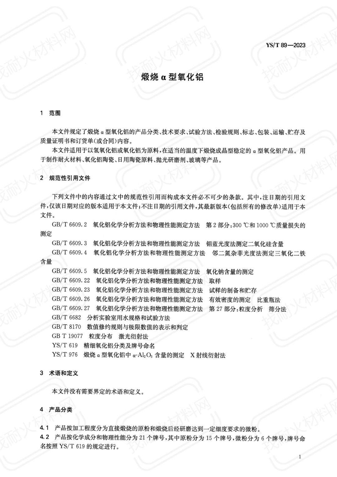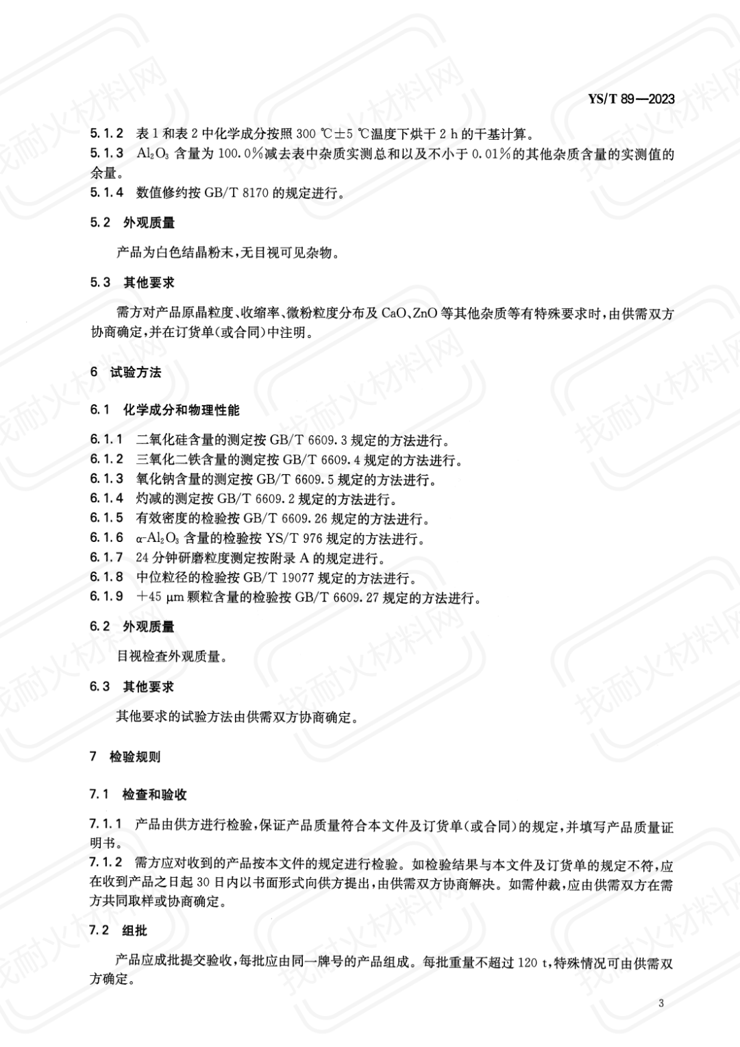 【耐材標(biāo)準(zhǔn)】YS/T 89-2023 煅燒α型氧化鋁