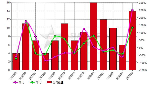 5月份上述14家增產(chǎn)生產(chǎn)商共計生產(chǎn)鎂錠26,300.00公噸,比上月增加5,900.00公噸,平均每家增加421.43公噸。
