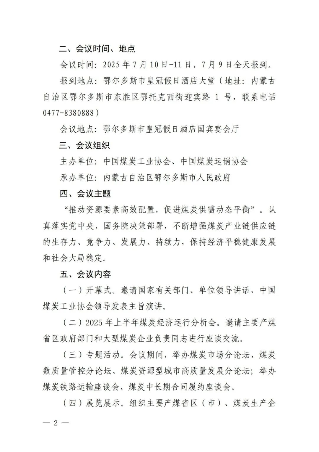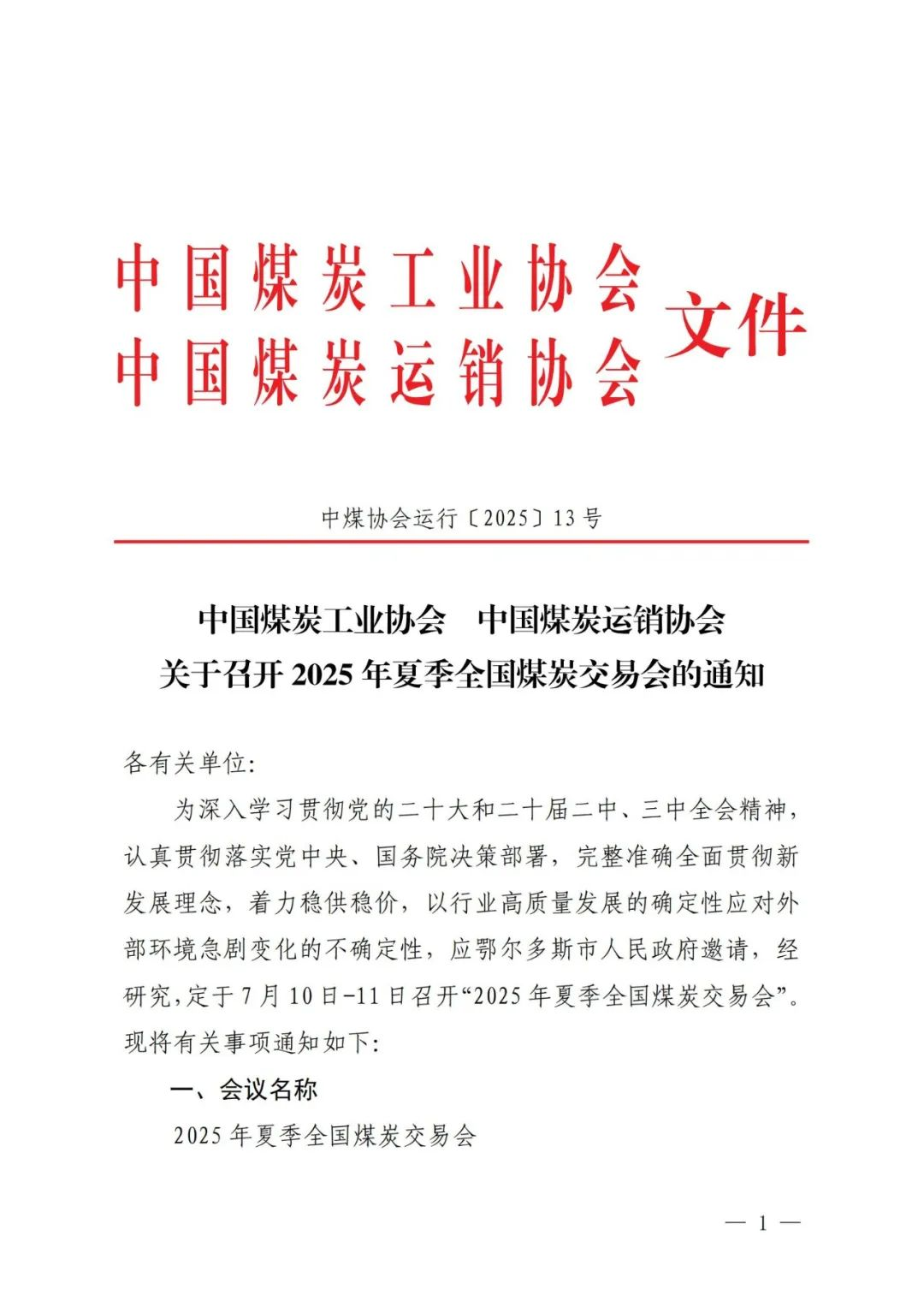 關(guān)于召開2025年夏季全國煤炭交易會(huì)的通知