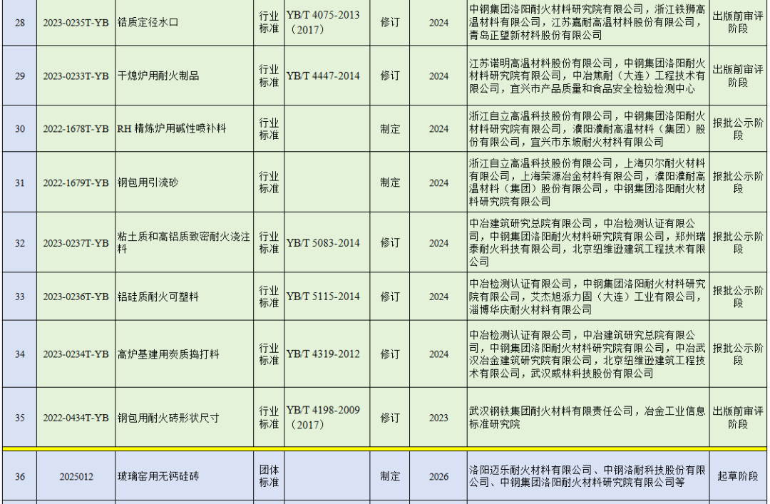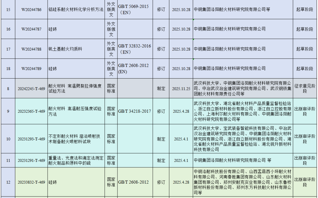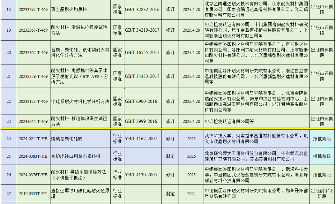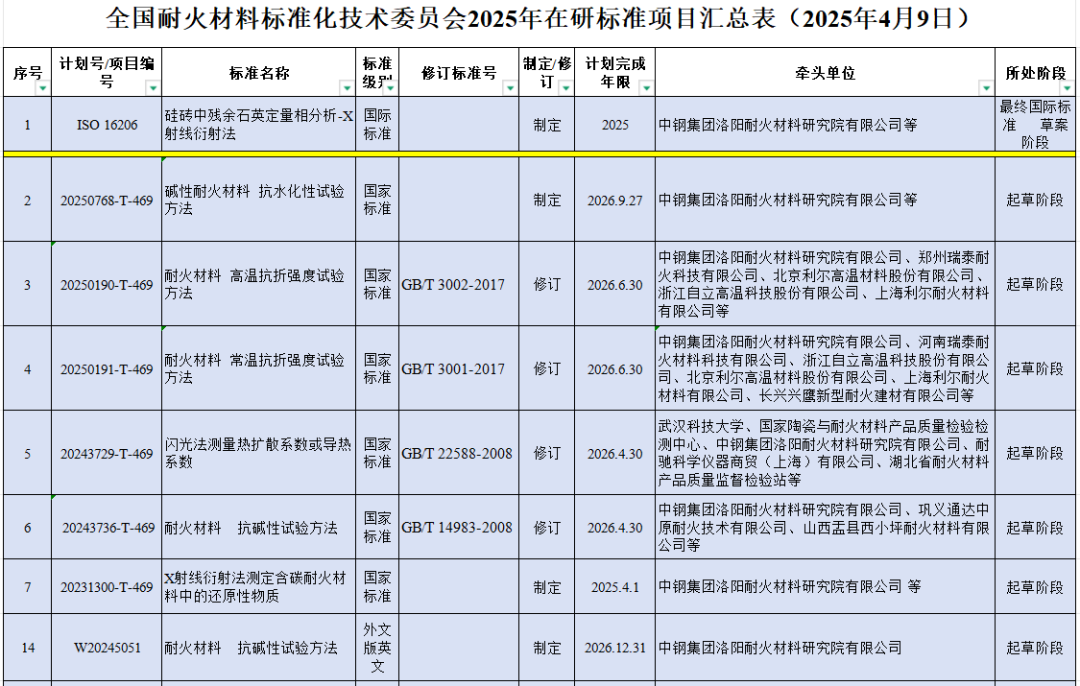 全國(guó)耐火材料標(biāo)準(zhǔn)化技術(shù)委員會(huì)2025年在研標(biāo)準(zhǔn)項(xiàng)目匯總表(2025年4月9日)