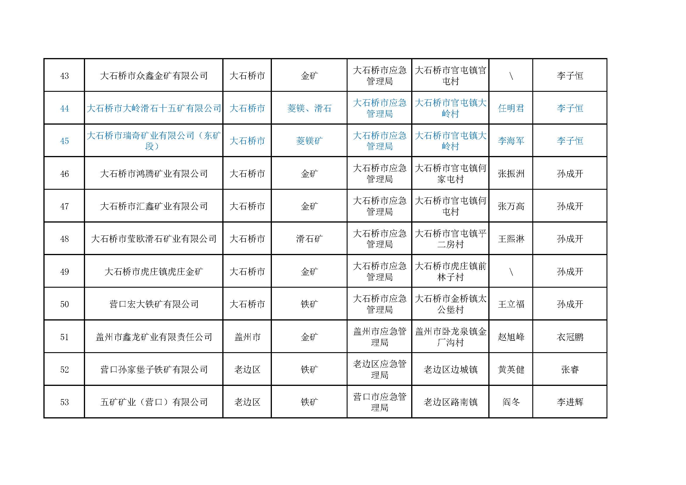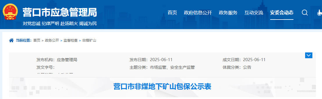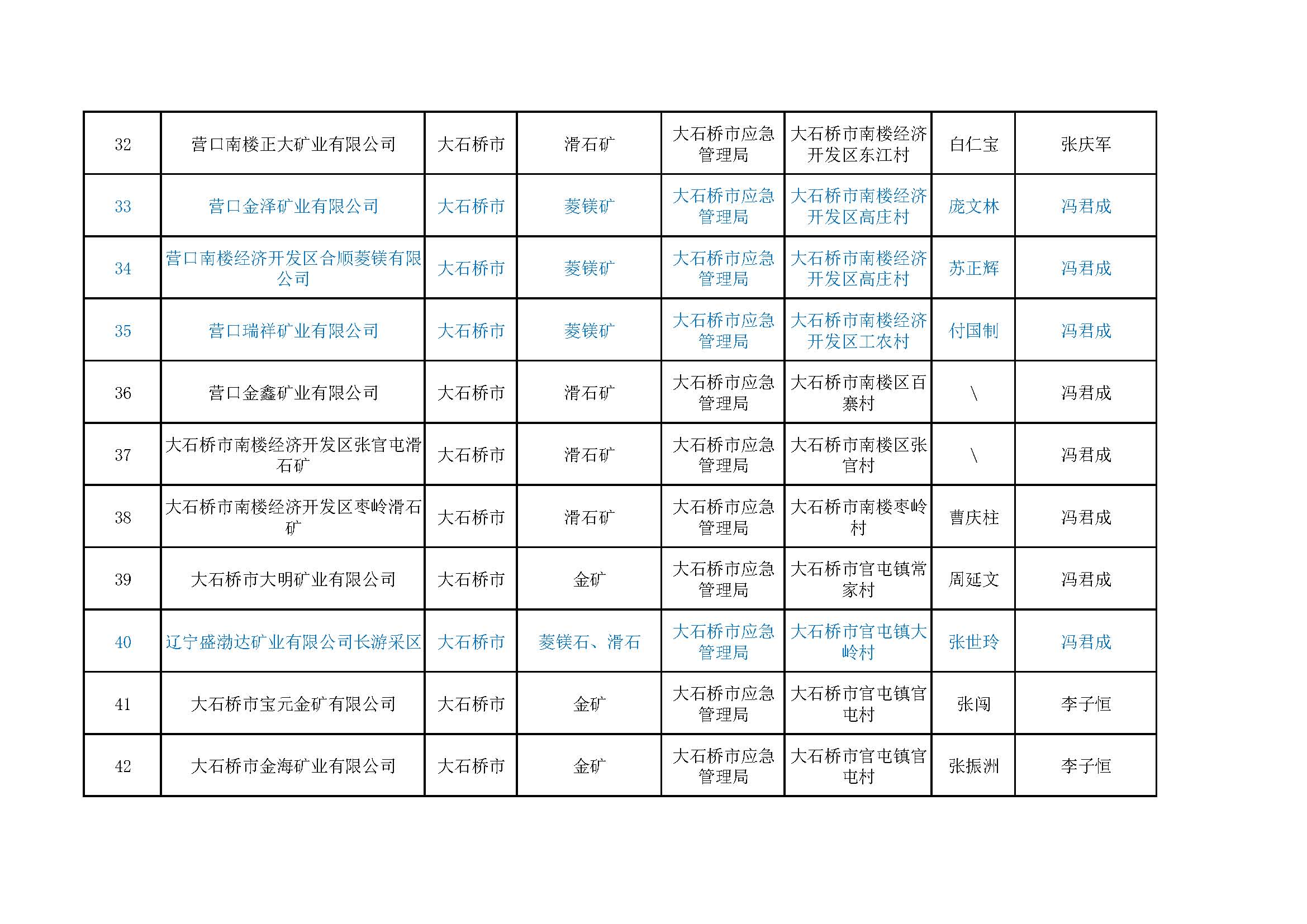 營(yíng)口市非煤地下礦山包保公示表,含6家菱鎂礦山