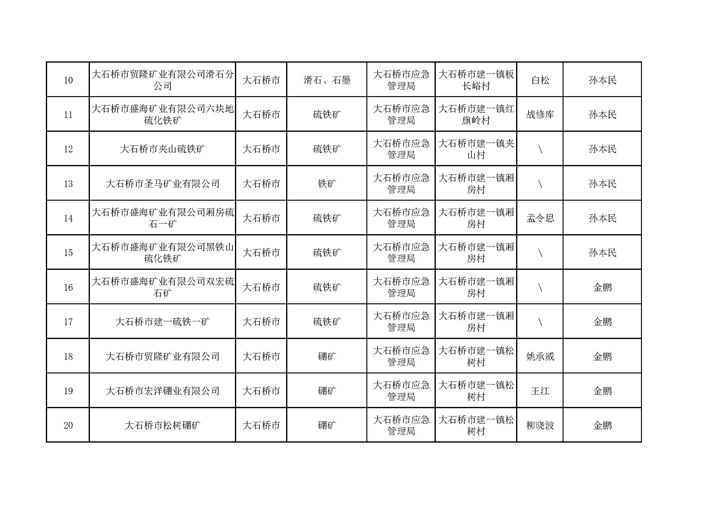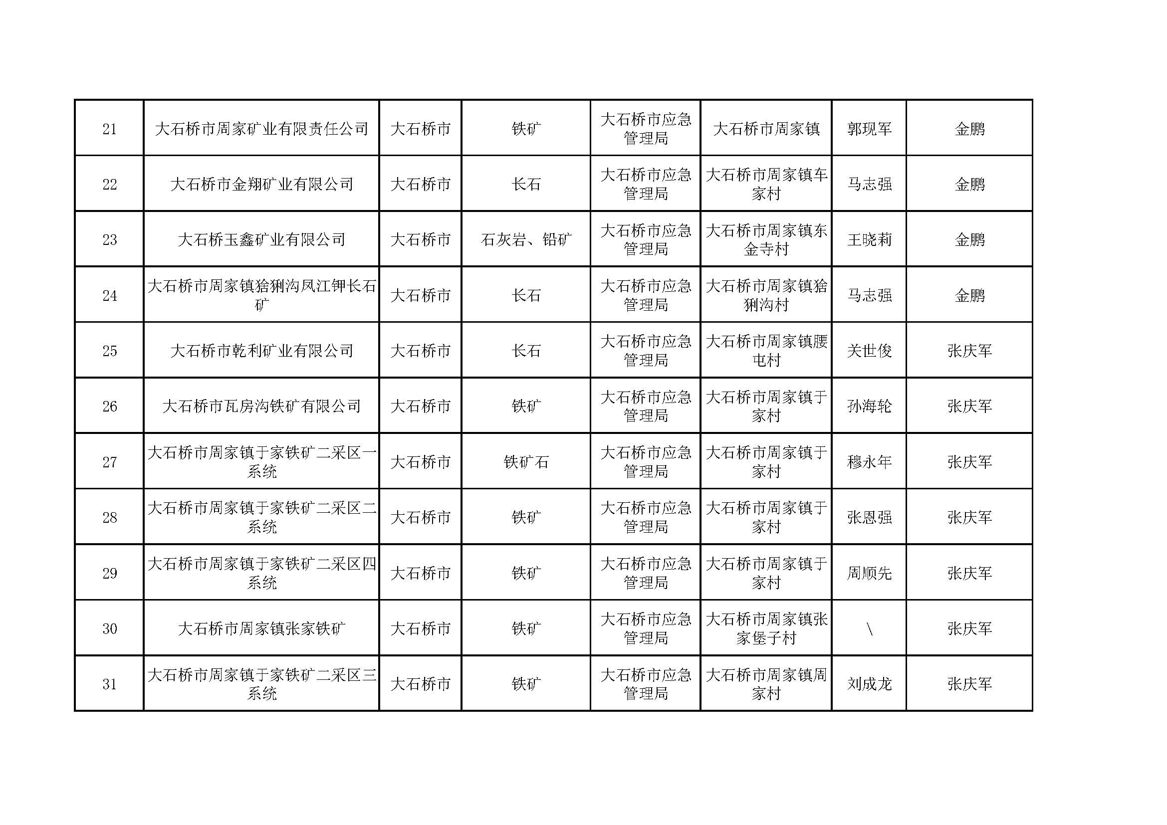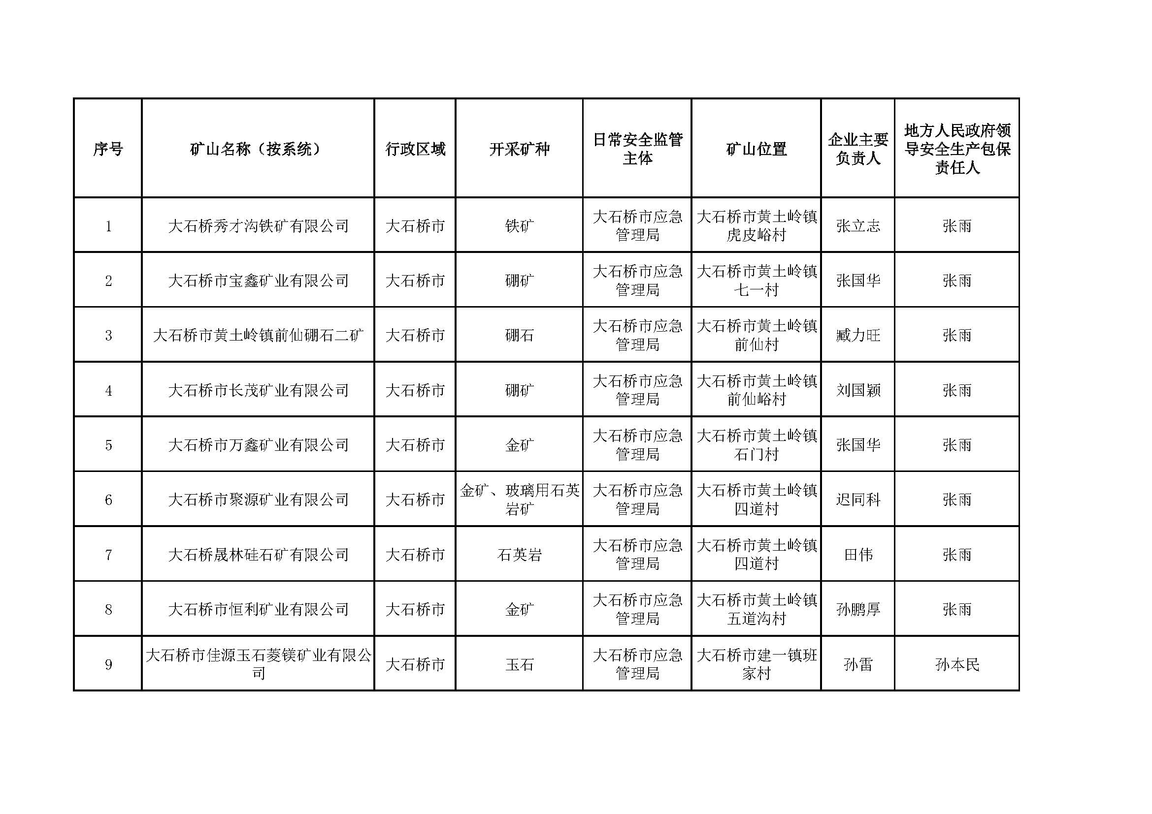 營(yíng)口市非煤地下礦山包保公示表,含6家菱鎂礦山