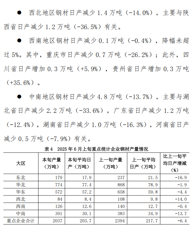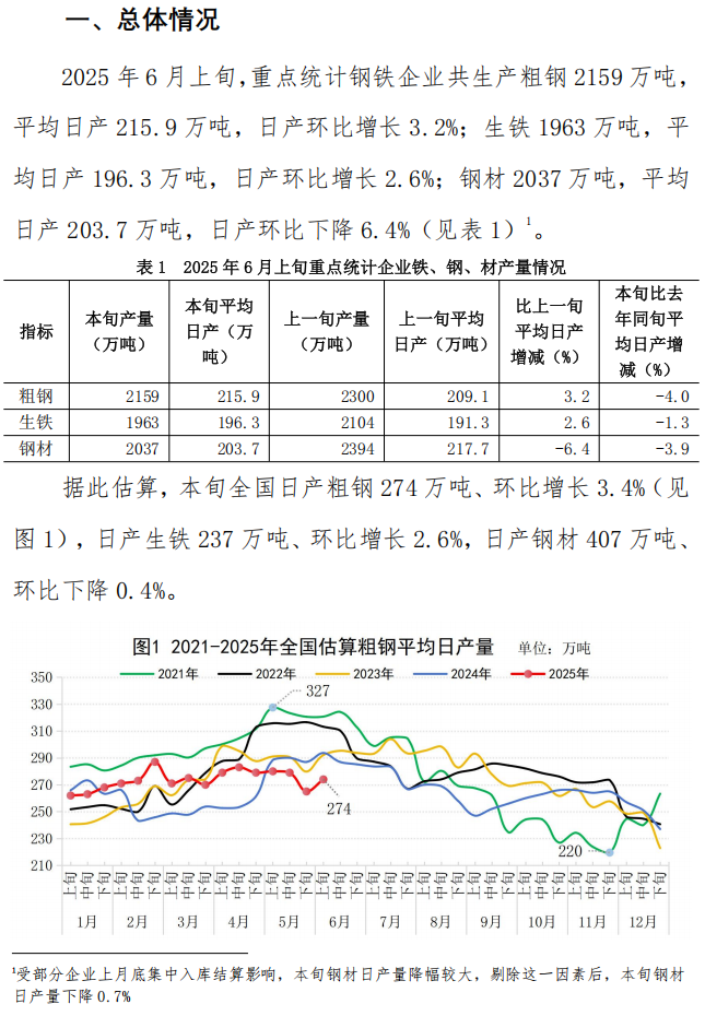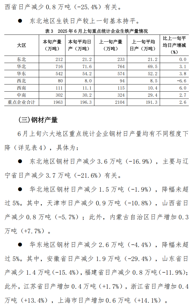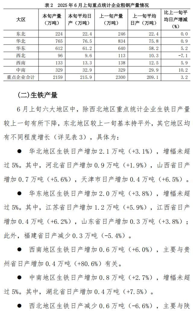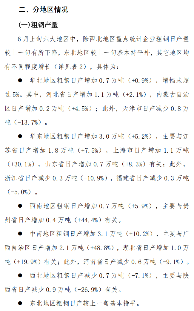 6月上旬重點統(tǒng)計企業(yè)鋼鐵產量旬報