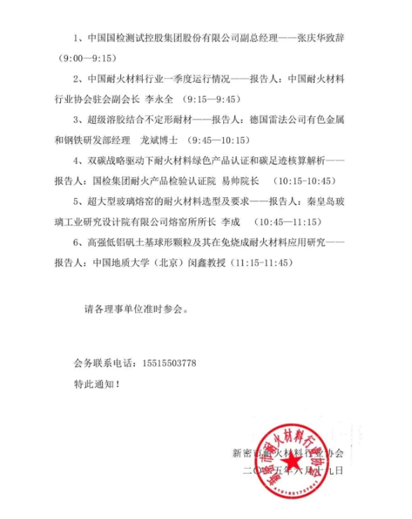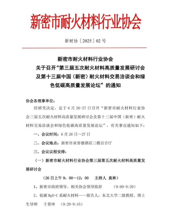 關(guān)于召開(kāi)“第三屆五次耐火材料高質(zhì)量發(fā)展研討會(huì)及第十三屆中國(guó)(新密)耐火材料交易洽談會(huì)和綠色低碳高質(zhì)量發(fā)展論壇”的通知?