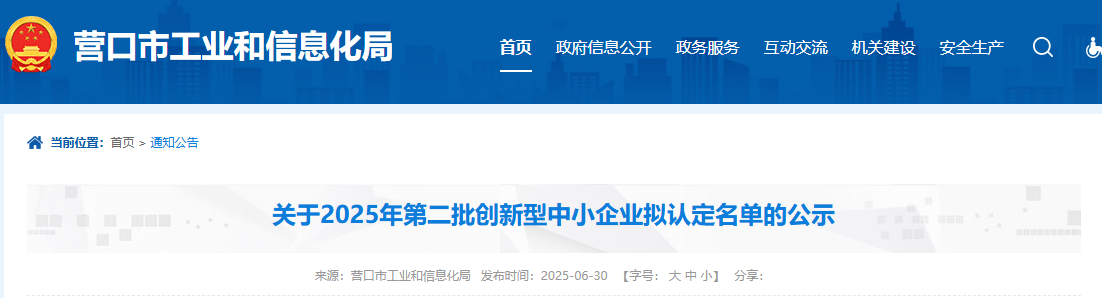按省工信廳《關(guān)于做好2025年度創(chuàng)新型中小企業(yè)申報(bào)工作的通知》要求,經(jīng)企業(yè)登錄優(yōu)質(zhì)中小企業(yè)梯度培育平臺(tái)自愿申報(bào),各縣(市)區(qū)、園區(qū)工信主管部門推薦,市工信局初審,擬認(rèn)定營(yíng)口宏宇元進(jìn)耐火材料有限公司等12家企業(yè)為2025年第二批創(chuàng)新型中小企業(yè),現(xiàn)將通過名單予以公示。任何單位或個(gè)人對(duì)公示有異議的,可在公示期內(nèi)與市工信局聯(lián)系。