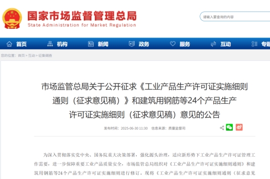 日前,市場(chǎng)監(jiān)管總局組織對(duì)《工業(yè)產(chǎn)品生產(chǎn)許可證實(shí)施細(xì)則通則》和建筑用鋼筋等24個(gè)產(chǎn)品生產(chǎn)許可證實(shí)施細(xì)則進(jìn)行修訂?,F(xiàn)將《工業(yè)產(chǎn)品生產(chǎn)許可證實(shí)施細(xì)則通則(征求意見(jiàn)稿)》和建筑用鋼筋等24個(gè)產(chǎn)品生產(chǎn)許可證實(shí)施細(xì)則(征求意見(jiàn)稿)向社會(huì)公開(kāi)征求意見(jiàn)。