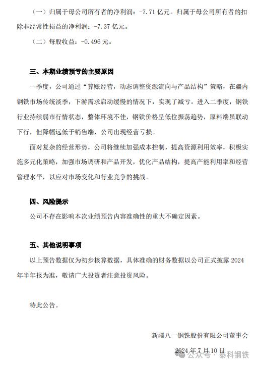 公告稱(chēng),一季度,公司通過(guò)“算賬經(jīng)營(yíng),動(dòng)態(tài)調(diào)整資源流向與產(chǎn)品結(jié)構(gòu)”策略,在疆內(nèi)鋼鐵市場(chǎng)傳統(tǒng)淡季,下游需求啟動(dòng)緩慢的情況下,實(shí)現(xiàn)了減虧。進(jìn)入二季度,鋼鐵行業(yè)持續(xù)弱市行情狀態(tài),整體環(huán)境不佳,鋼鐵價(jià)格呈低位振蕩趨勢(shì),原料端雖聯(lián)動(dòng)下行,但降幅遠(yuǎn)低于銷(xiāo)售端,公司出現(xiàn)經(jīng)營(yíng)虧損。面對(duì)復(fù)雜的經(jīng)營(yíng)形勢(shì),公司將繼續(xù)加強(qiáng)成本控制,提高資源利用效率,積極實(shí)施多元化策略,加強(qiáng)市場(chǎng)調(diào)研和產(chǎn)品開(kāi)發(fā),優(yōu)化產(chǎn)品結(jié)構(gòu),提高產(chǎn)能利用率和經(jīng)營(yíng)管理水平,以應(yīng)對(duì)市場(chǎng)變化和行業(yè)競(jìng)爭(zhēng)的挑戰(zhàn)。