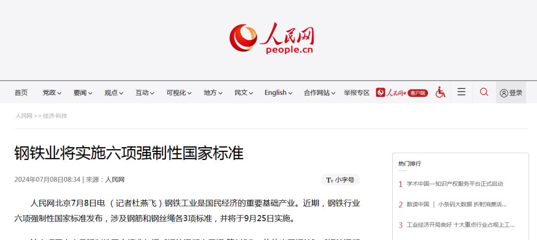 鋼鐵工業(yè)是國民經(jīng)濟的重要基礎(chǔ)產(chǎn)業(yè)。近期,鋼鐵行業(yè)六項強制性國家標準發(fā)布,涉及鋼筋和鋼絲繩各3項標準,并將于9月25日實施。