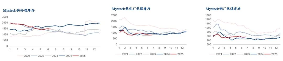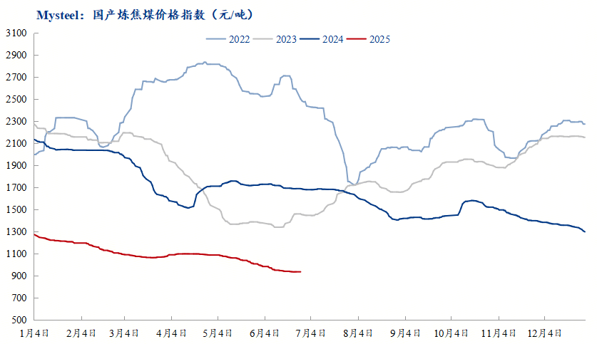 回顧2025年上半年的煉焦煤市場,過剩的壓力和悲觀的預期依舊壓制煉焦煤持續(xù)下跌。雖然從下游鐵水數(shù)據(jù)來看,剛需較去年同比有所回升。但供應過剩、市場信心缺失依舊導致煉焦煤價格延續(xù)去年單邊下行的行情走勢,各煤種價格已降至8年內新低。雖然在三月底四月初煤價出現(xiàn)曇花一現(xiàn)般短暫上漲,但總體跌勢不改,基本面矛盾持續(xù)加劇,市場悲觀情緒蔓延,投機市場活躍度持續(xù)降低,上游庫存持續(xù)高壓。展望下半年市場,煤炭供應在低價格壓制之下將有收縮預期,但煤礦全年生產(chǎn)任務仍需完成,國內煤炭大幅減產(chǎn)難度較大,進口煤需求下滑,通關量有小幅減量的可能。而需求側鋼廠由于盈利狀況尚可,短期高爐減產(chǎn)力度不大,但隨著成材消費下滑以及出口壓力加大,下半年鐵水產(chǎn)量環(huán)比下滑仍是大概率事件。因此下半年煉焦煤市場基本面仍將維持寬松格局,但由于煤價下行已逼近煤礦生產(chǎn)成本,高成本煉焦煤資源已被擠出,煉焦煤價格底部顯現(xiàn),煤礦讓利空間有限,預計行情降幅將小于上半年,煤價加速下跌的時期已經(jīng)過去,后續(xù)價格博弈將更為激烈,不排除階段性供需錯配引發(fā)行情短期波動。