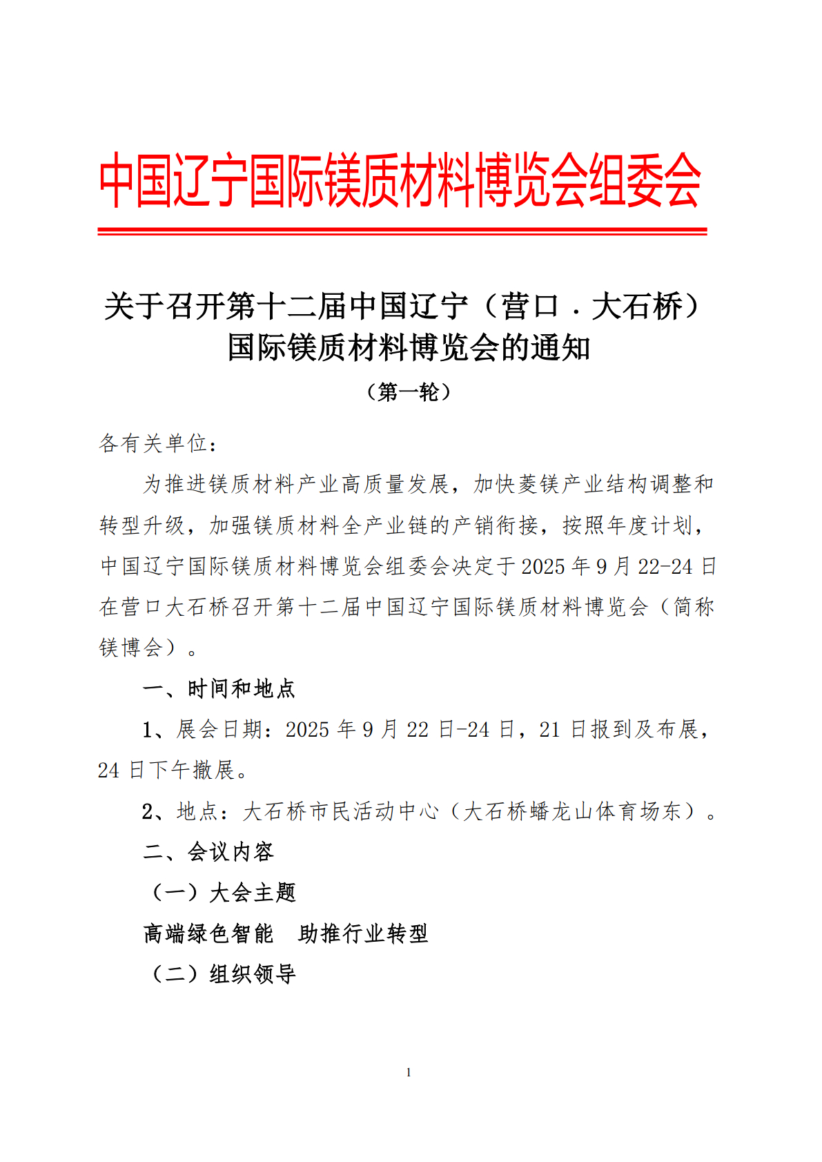關(guān)于召開第十二屆中國遼寧(營口.大石橋)國際鎂質(zhì)材料博覽會的通知
