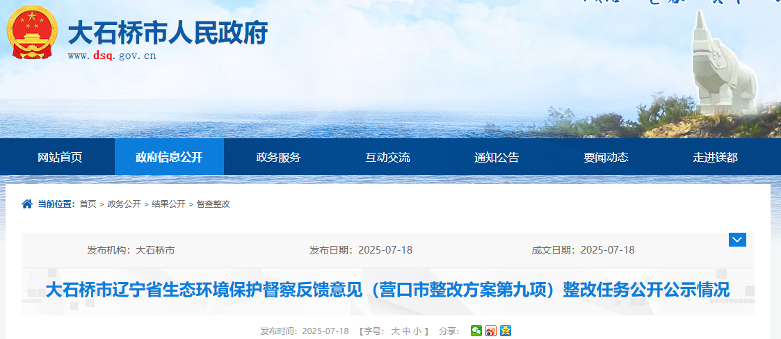 以上整改情況向社會(huì)公示,如有異議,請(qǐng)以書面或電話形式,向大石橋市環(huán)境保護(hù)督察整改工作領(lǐng)導(dǎo)小組辦公室、營(yíng)口市大石橋生態(tài)環(huán)境分局反映。